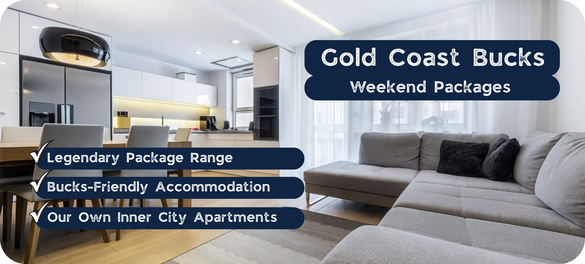 - Epic accommodations – No dodgy motels here. We’re talking premium, Bucks-friendly apartments in the heart of Gold Coast.