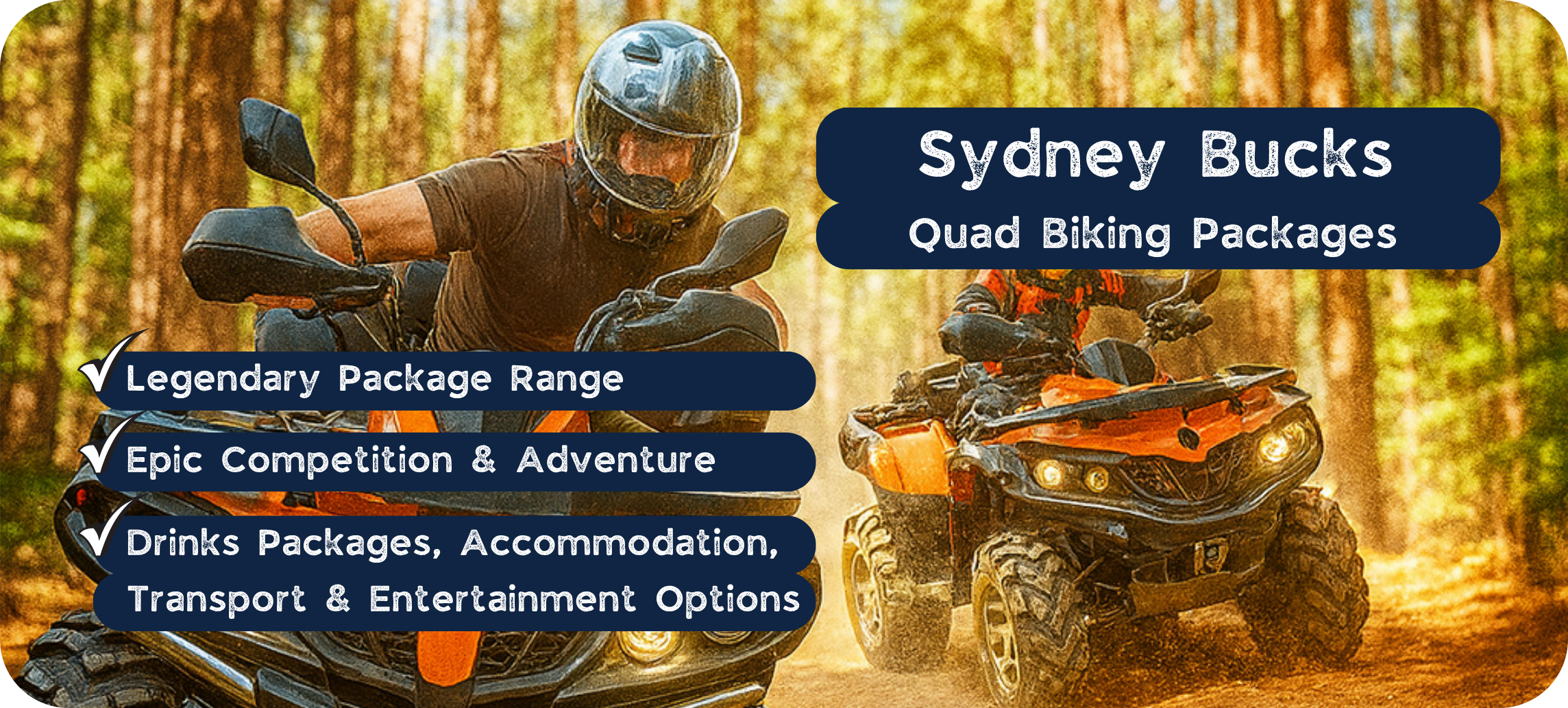 Here’s the thing, our quad biking bucks packages are some of the most in-demand adventures in Sydney, and spots fill up faster than your mate hitting a tree on his first lap. Don’t risk missing out on your preferred date. Click below to tell us what your dream off-road bucks party looks like, and we’ll sort you out with one of our epic Sydney quad biking packages all the dirt-flinging, throttle-smashing, adrenaline-charged action you could want, with beers and entertainment to send the buck off in style.